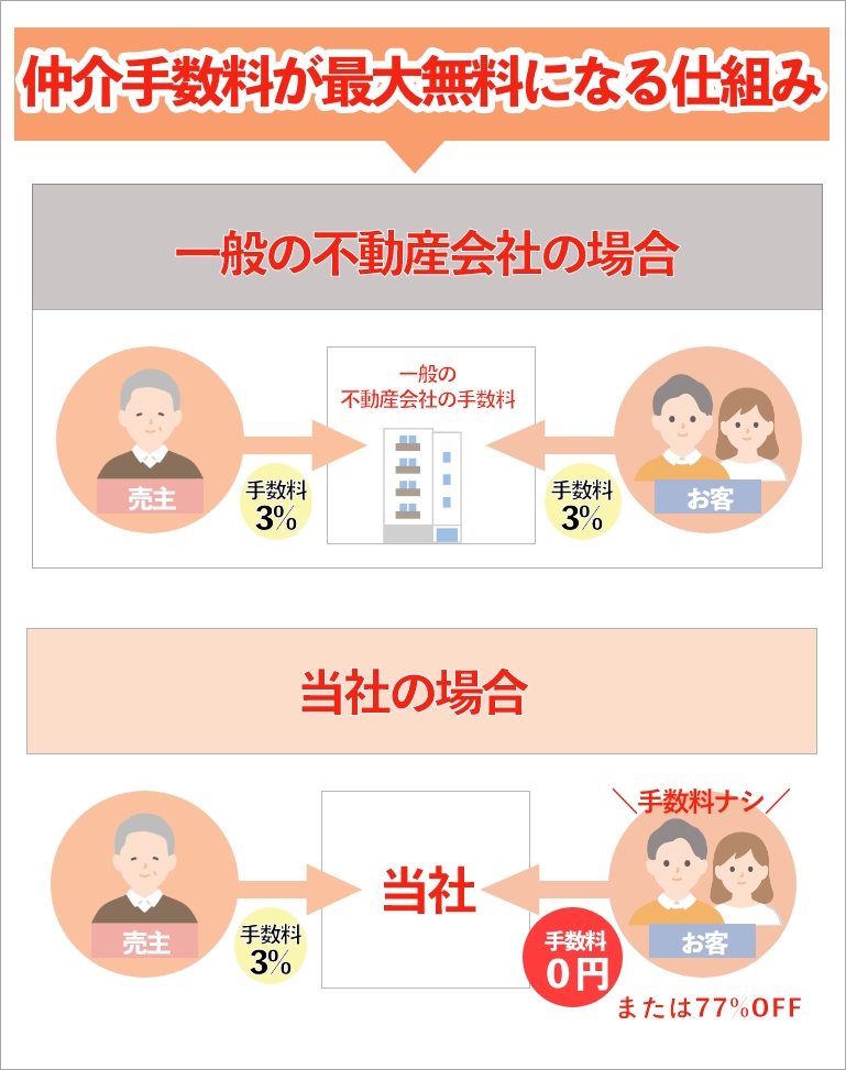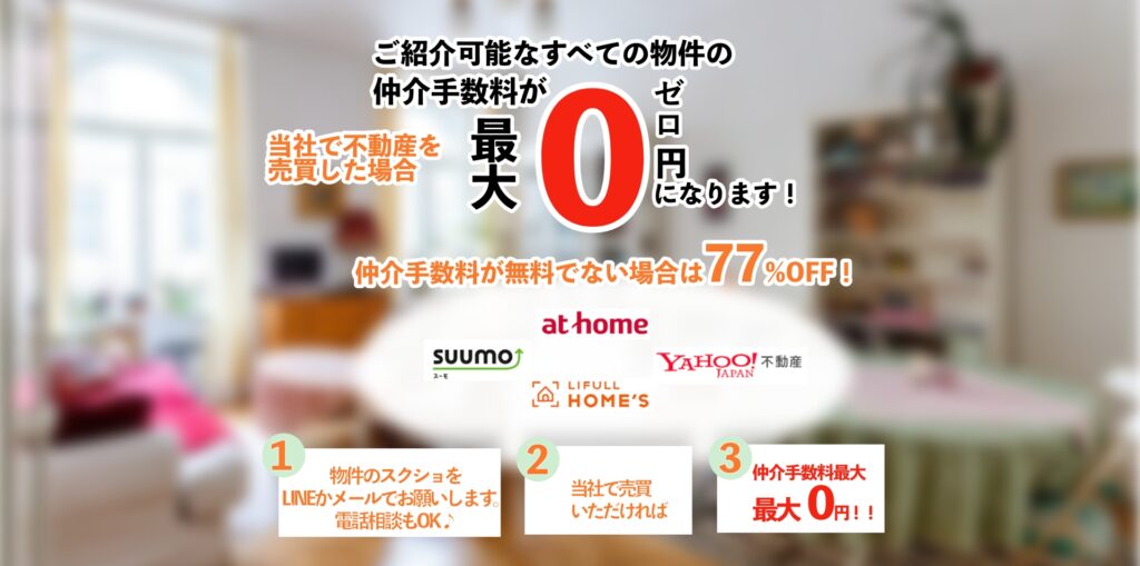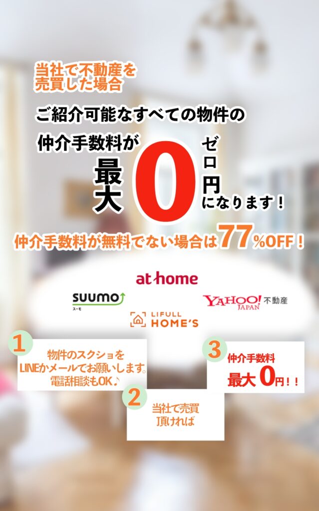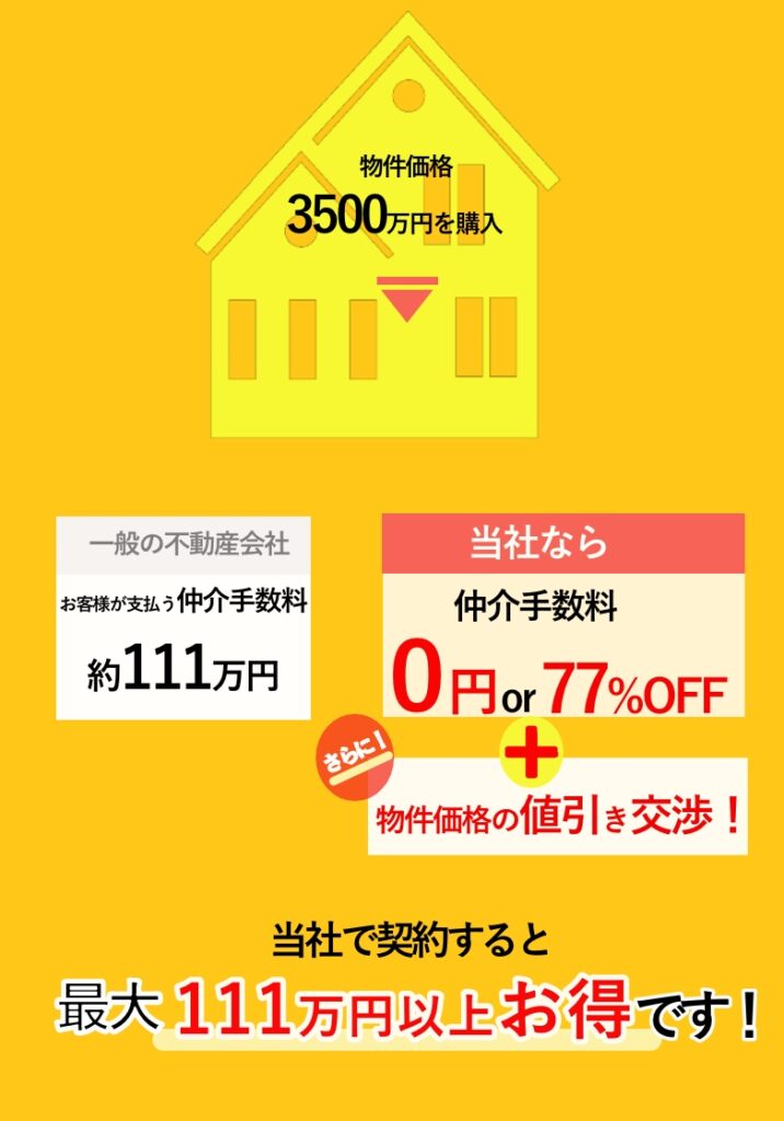 仲介手数料が0円となるか77%OFFかお伝えします。